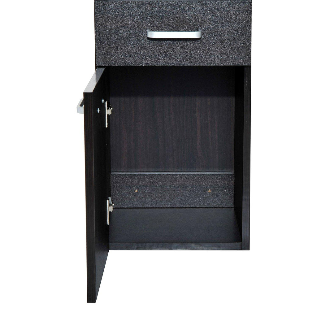 Il comprend 2 compartiments ouverts, 2 portes et un tiroir pour garder votre salle de bain bien rangée