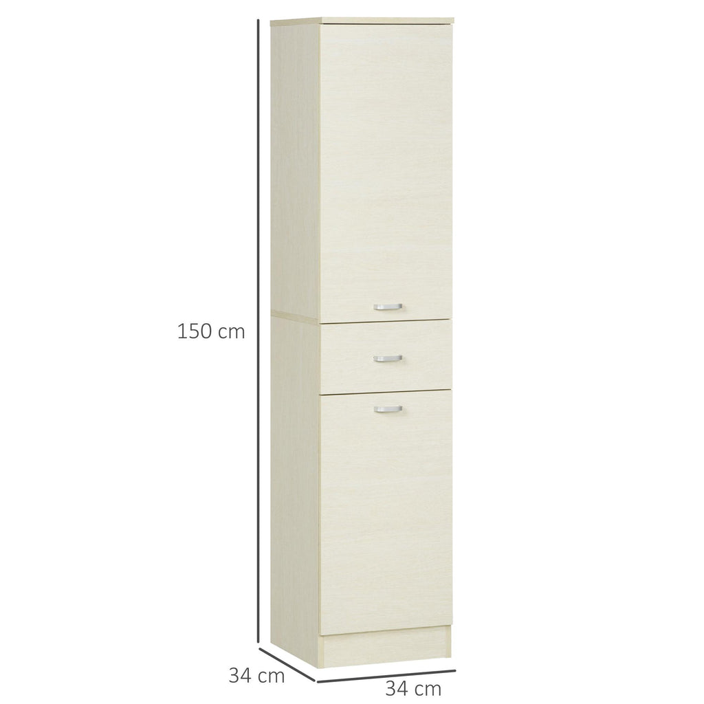 Meuble Colonne de Salle de Bain 34x34x150 cm 2 Portes 1 Tiroir Couleur Bois