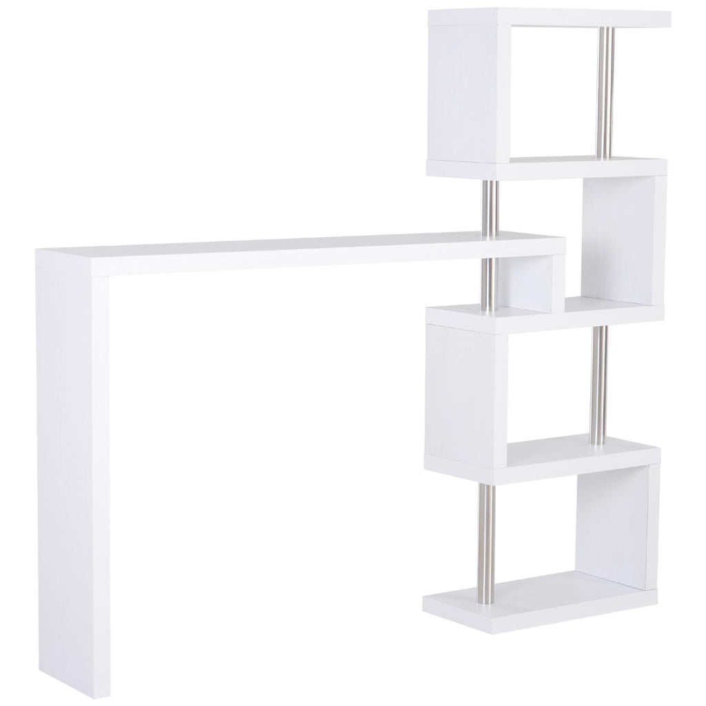 Étagère Bibliothèque 4 Niveaux avec Table en MDF Blanc