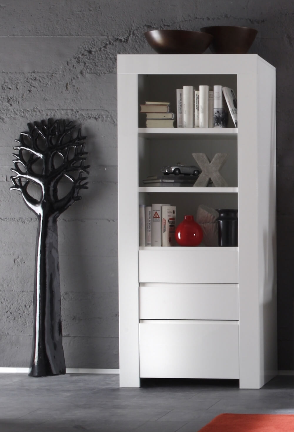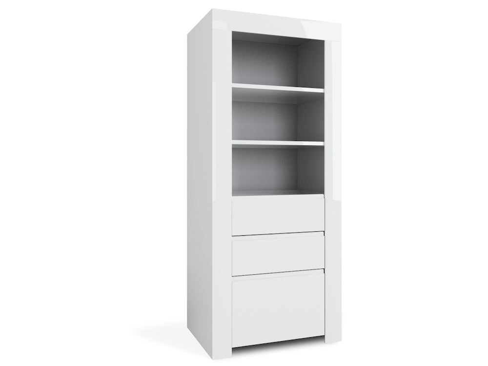 Armoire Haute 1 Porte 2 Tiroirs et 3 Étagères Ouvertes 71,5x50x170cm TFT Ambre Blanc Brillant