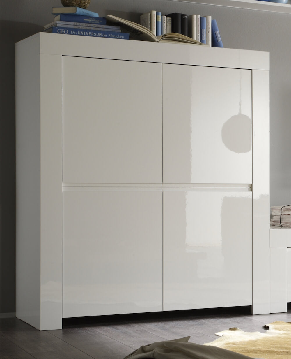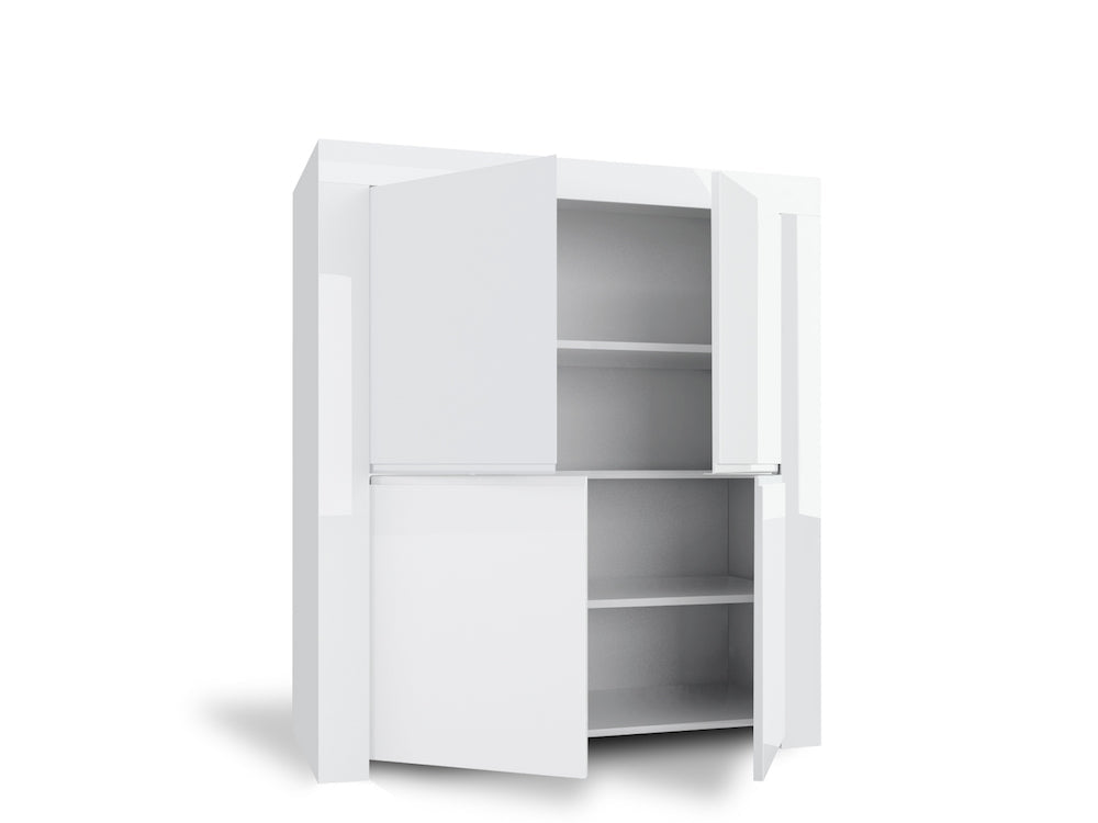 Armoire 4 Portes et 4 Étagères 118,5x50x140cm TFT Ambre Blanc Brillant