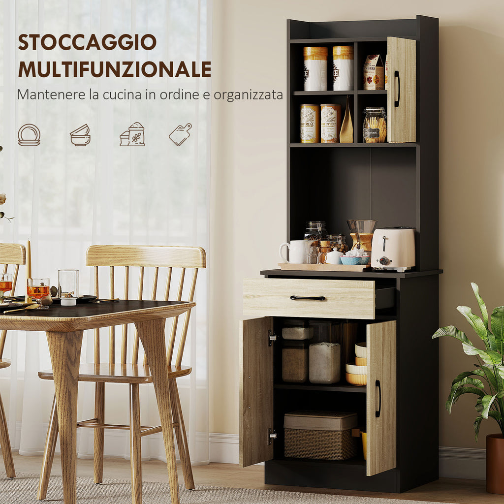 • SPAZIO A DISPOSIZIONE: Questo mobile dispensa mette a disposizione dei ripiani aperti, armadietti e cassetti per tenere tutti i tuoi utensili ben organizzati e facilmente accessibili, oltre che per creare un ambiente ordinato e accogliente