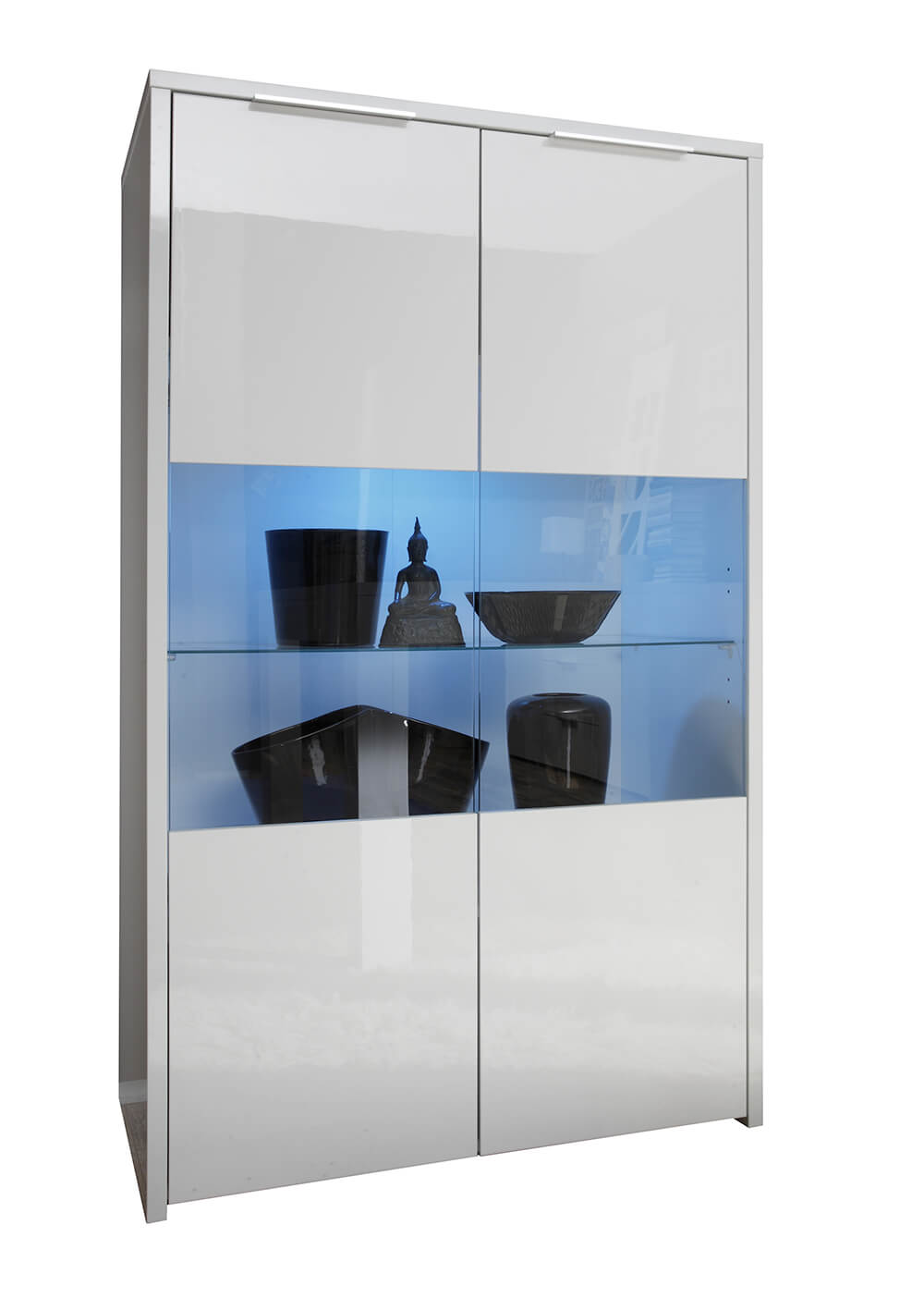 Meuble de Salon Haut 2 Portes Finition Centrale en Verre 140x78x42cm TFT Sorren Blanc Brillant