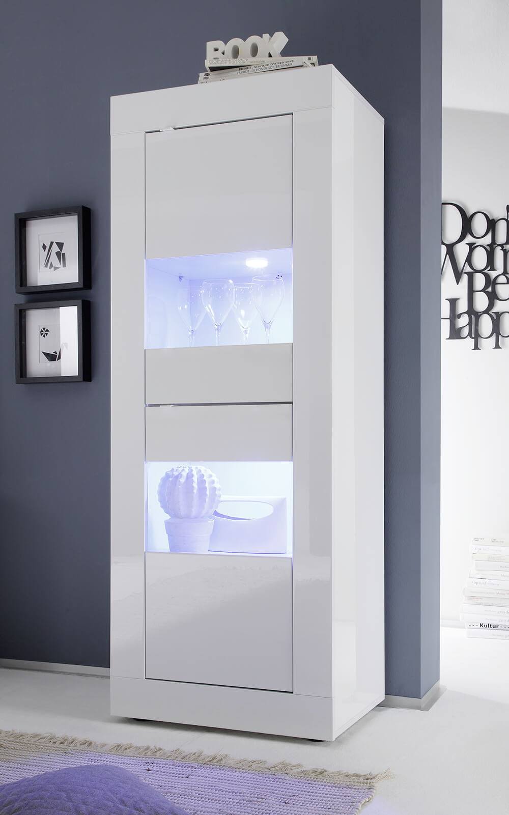 Meuble de Salon Haut 2 Portes 61x43x162cm TFT Basic Blanc Brillant