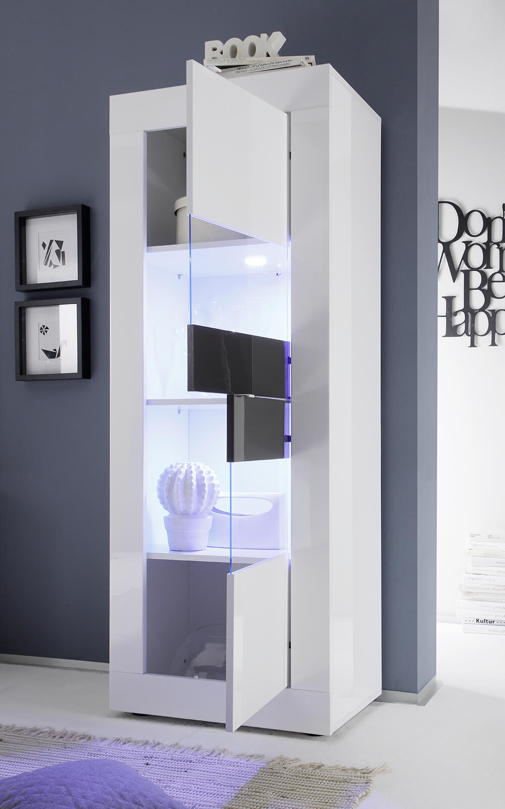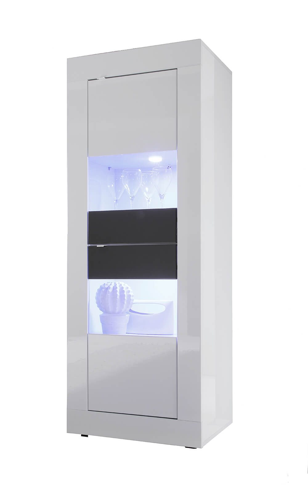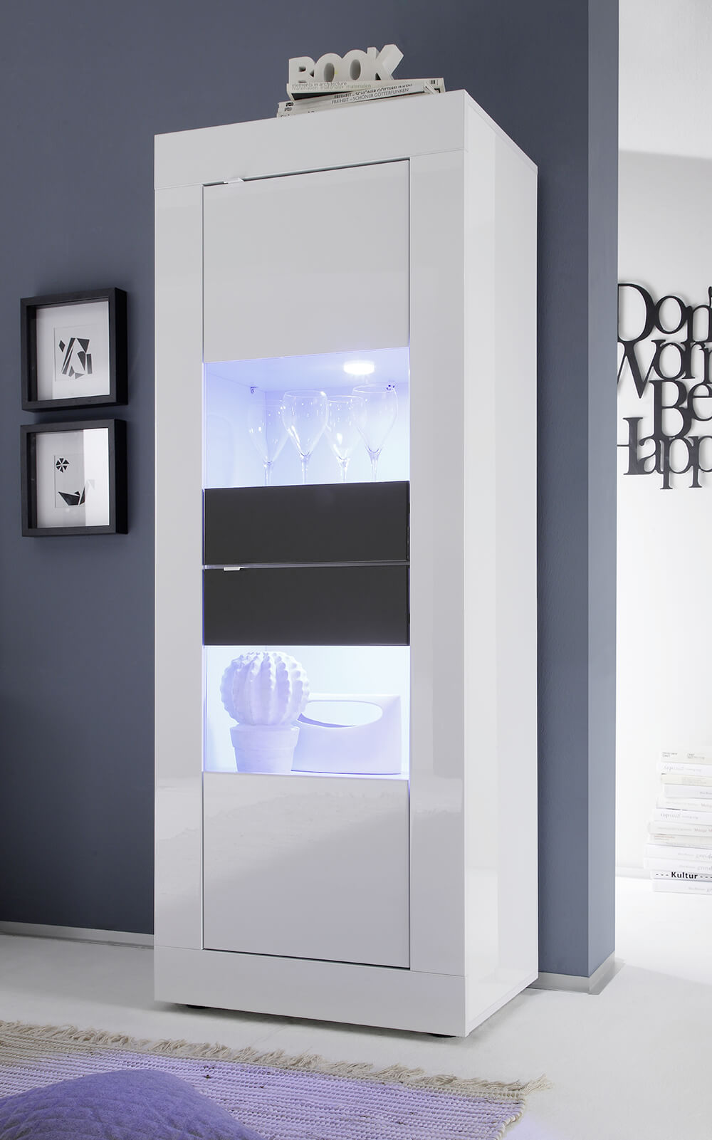 Meuble de Salon Haut 2 Portes 61x43x162cm TFT Basic Blanc Brillant et Anthracite Brillant et