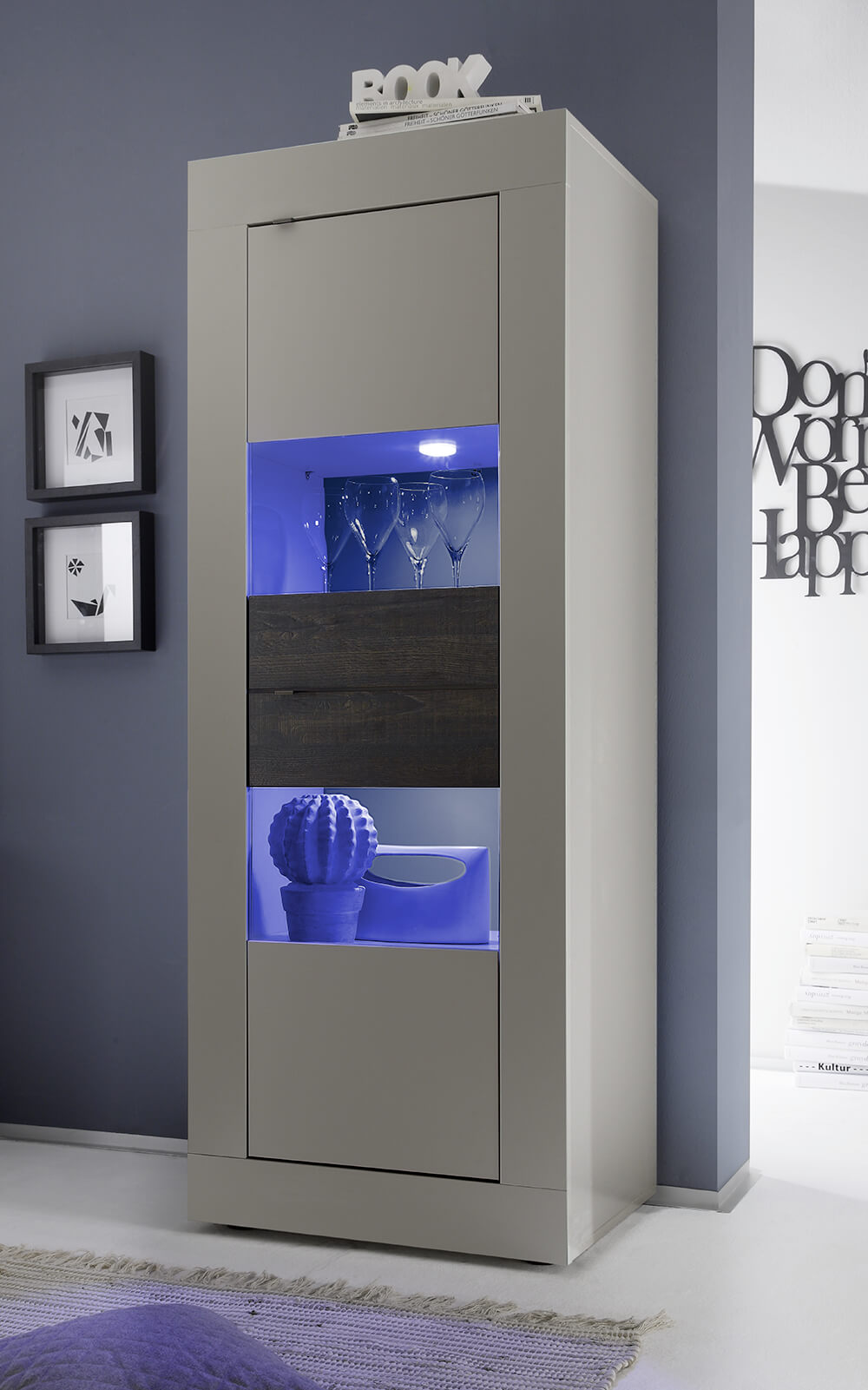 Armoire de Salon Haute 2 Portes 61x43x162cm TFT Basic Étain et Chêne Wengè