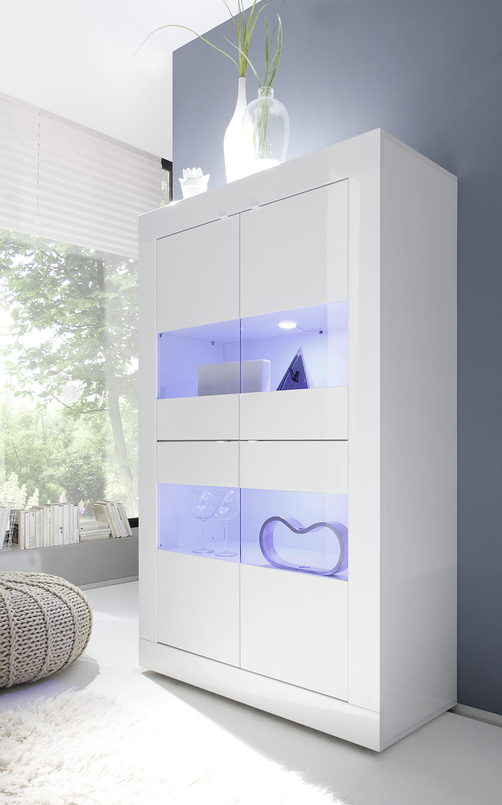 Meuble de Salon Haut 4 Portes 102x43x162cm TFT Basic Blanc Brillant