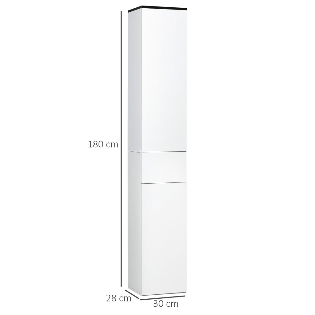 Meuble de Salle de Bain 2 Portes 1 Tiroir 30x28x180 cm en Bois Blanc