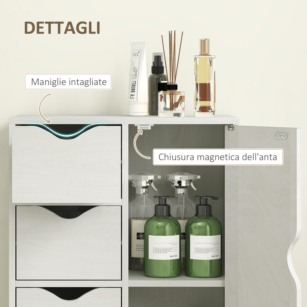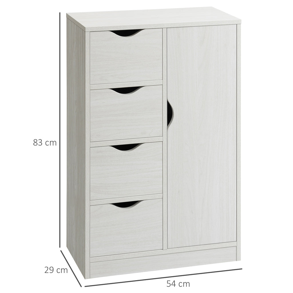 Mobile Bagno con 4 Cassetti e Armadietto 54x29x83 cm Maniglie Ritagliate in Legno Bianco