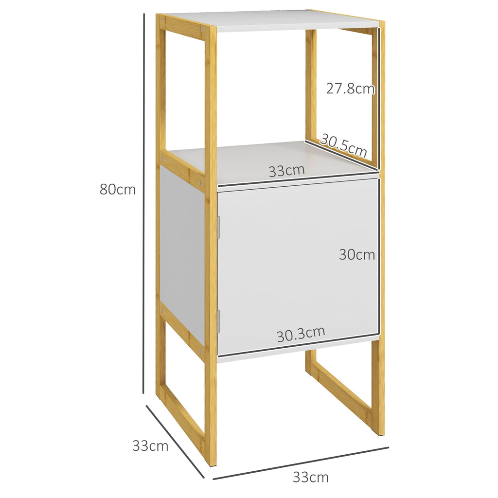 Mobile Bagno con Ripiano Aperto e Anta con Apertura a Pressione 33x33x80 cm in Bambù e MDF Bianco