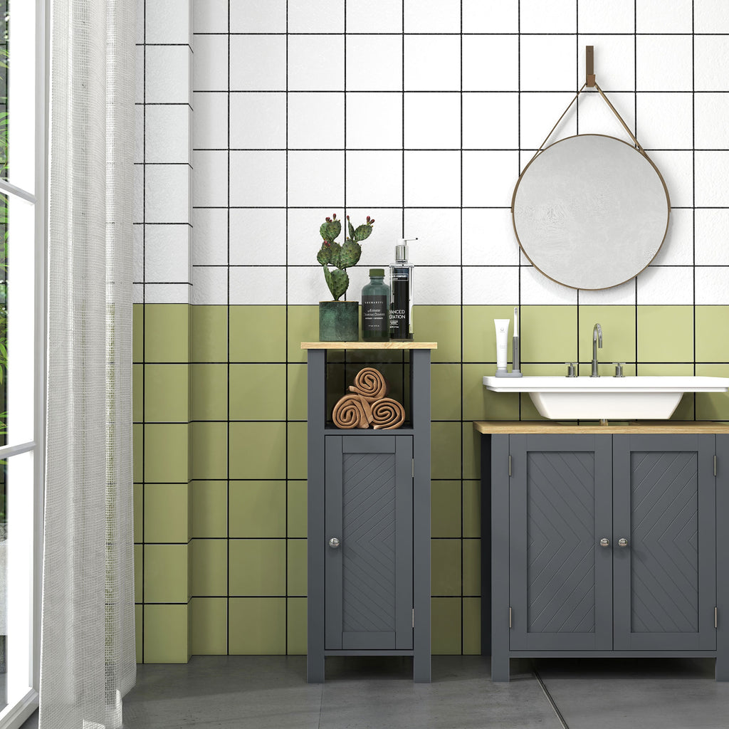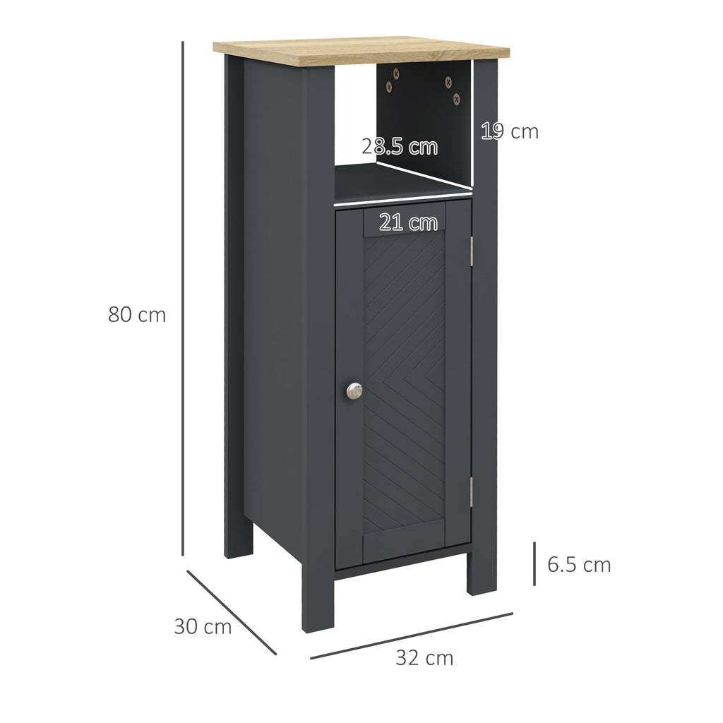 Meuble de salle de bain gain de place 1 porte 1 étagère 32x30x80 cm en aggloméré gris et MFD
