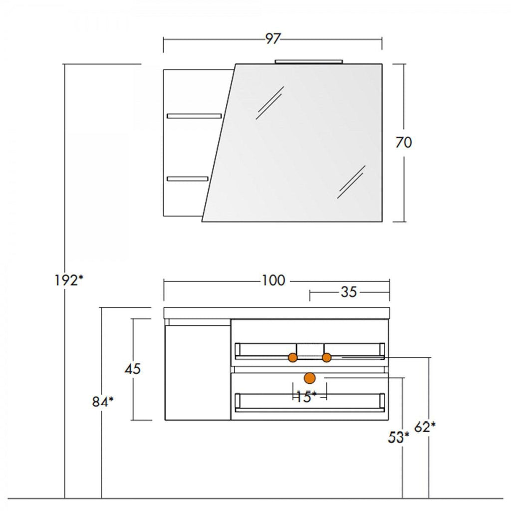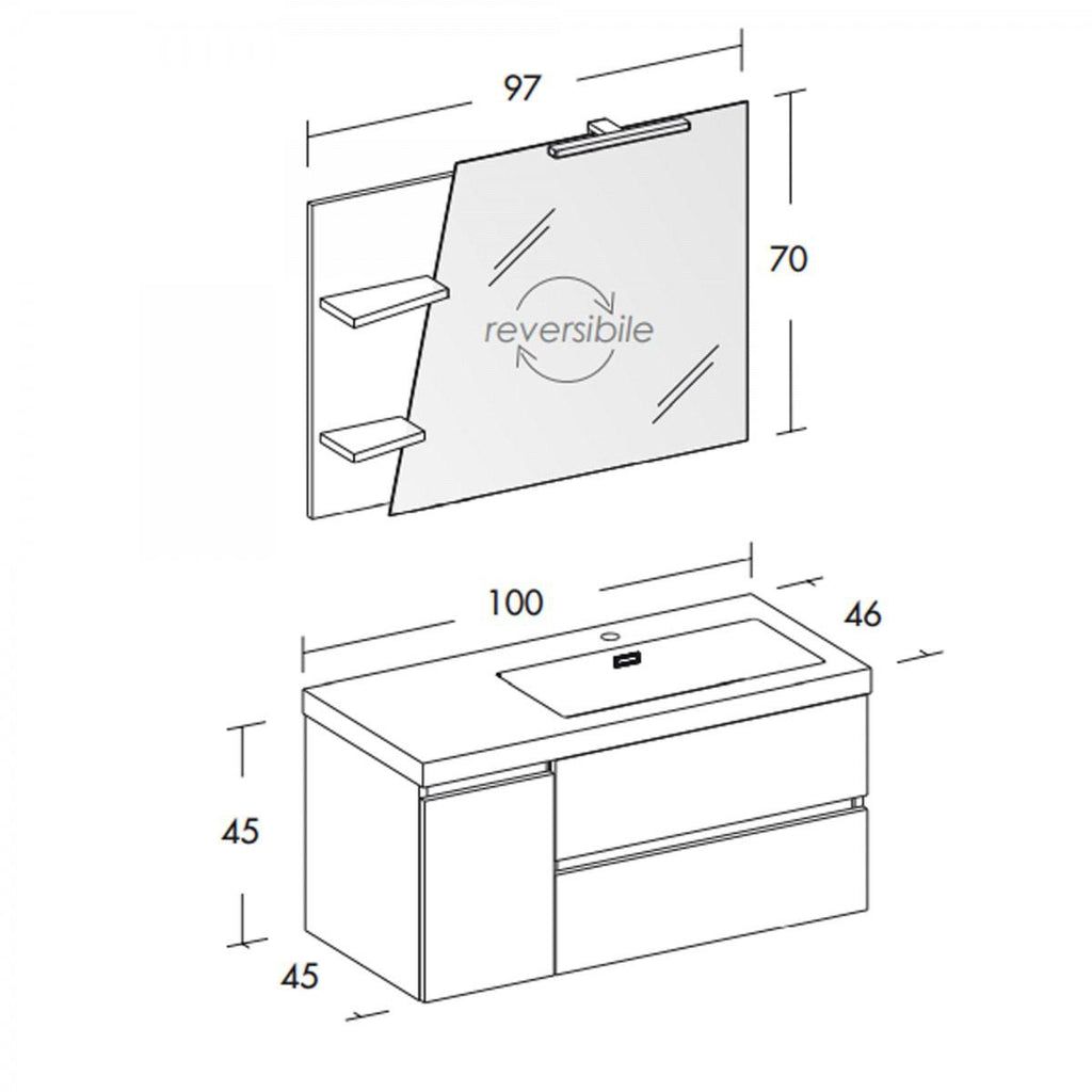 Meuble de Salle de Bain Suspendu 100 cm Bonussi Pegaso Blanc Lavabo et Miroir