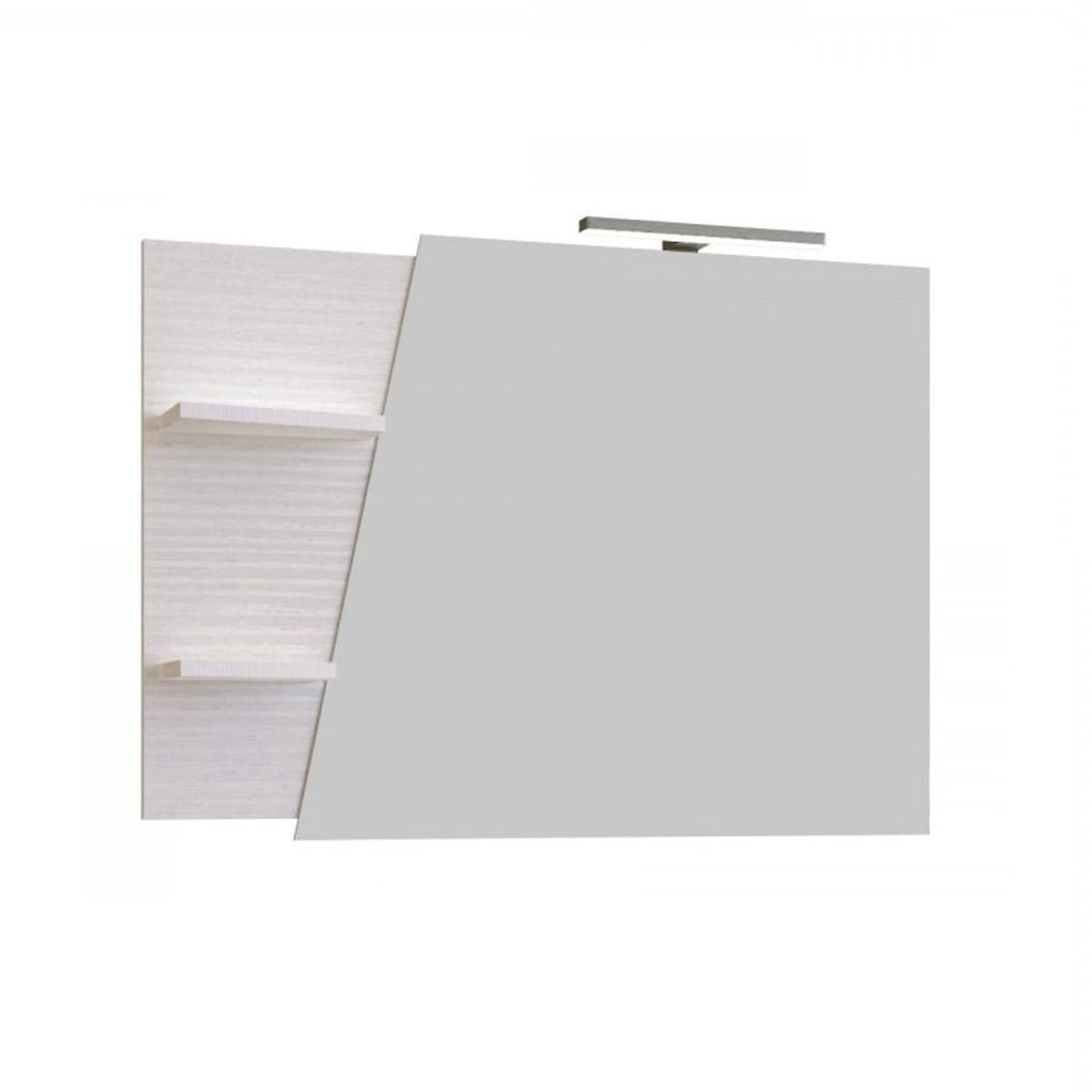 Meuble de salle de bain suspendu 100 couleur mélèze blanc avec vasque en RÉSINE ACRYLIQUE OCRITECH BRILLANTE avec grande vasque rectangulaire. Équipé d'un miroir à bord poli avec un insert en mélèze blanc avec deux étagères intégrées. Lampe à led chromée avec lumière naturelle. Tiroirs avec ouverture à gorge équipés d'une fermeture à fermeture amortie calibrée, porte à fermeture amortie