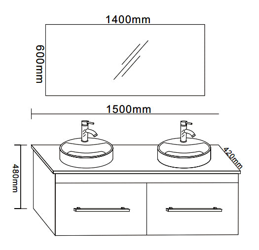 - Meuble de salle de bain en MDF (bois) mesurant 150 x 42 x h48 cm