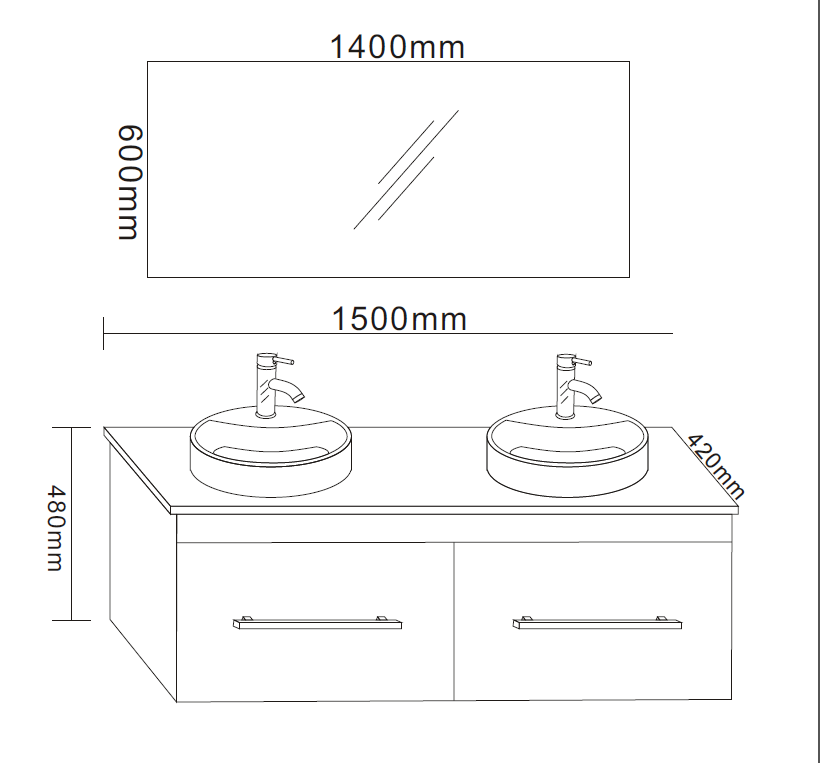 - Meuble de salle de bain en MDF (bois) mesurant 150 x 42 x h48 cm