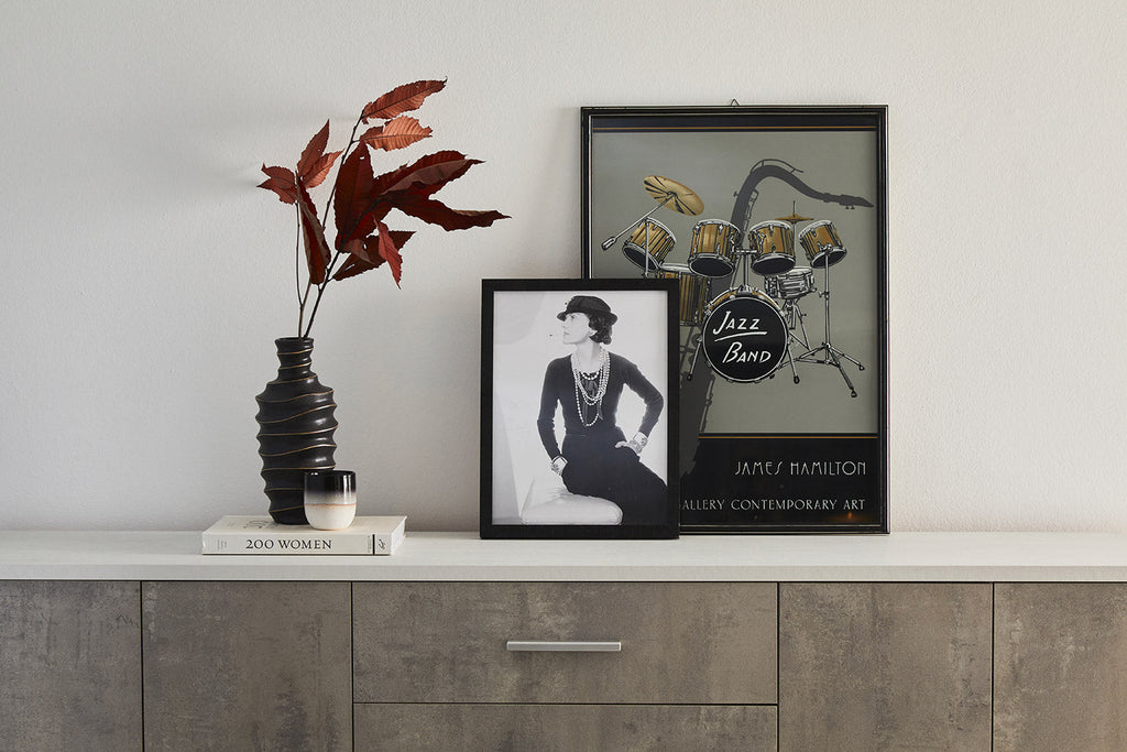 Mobile Basso 4 Ante 4 Cassetti 203x84x41 cm Ossido Bianco/Cemento