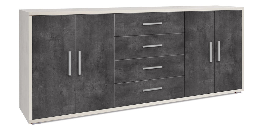 Mobile Basso 4 Ante 4 Cassetti 203x84x41 cm Ossido Bianco/Ossido Nero