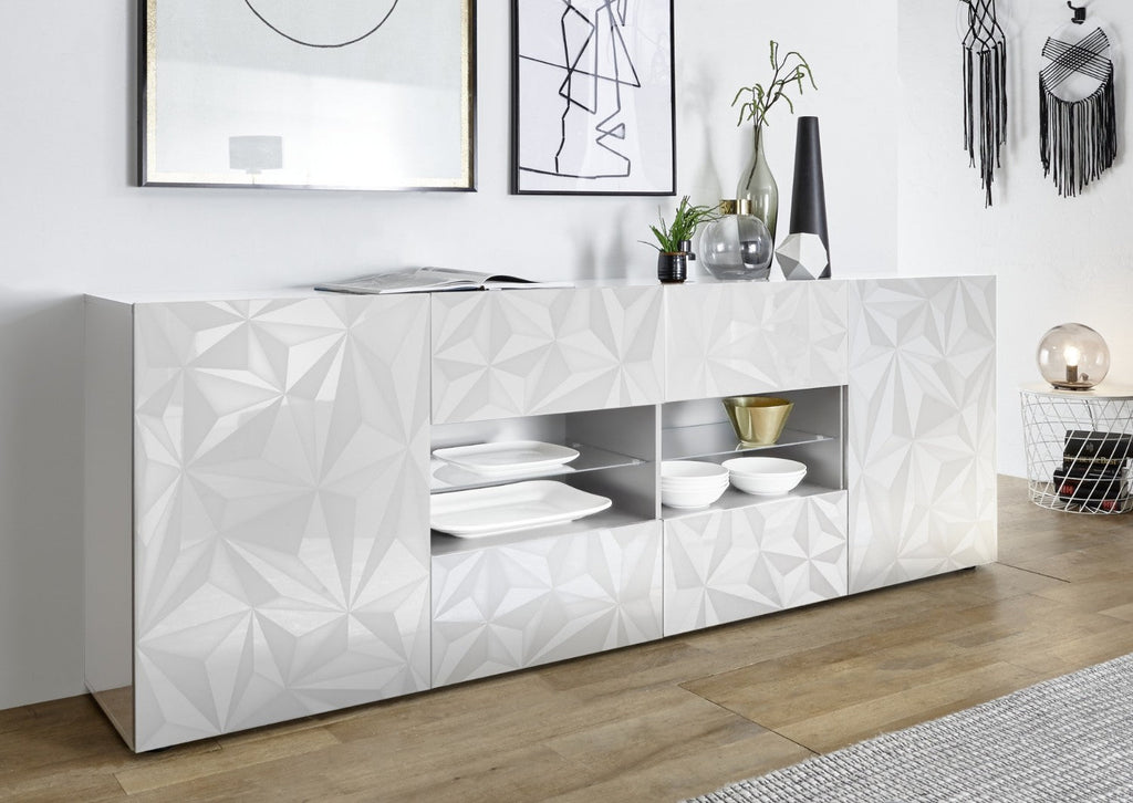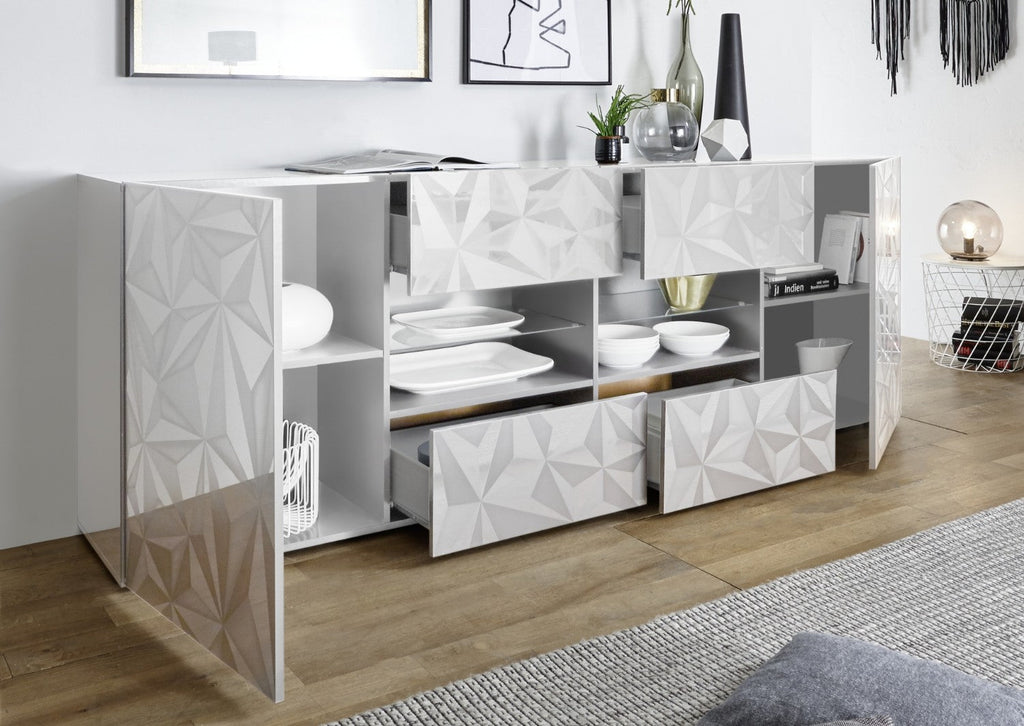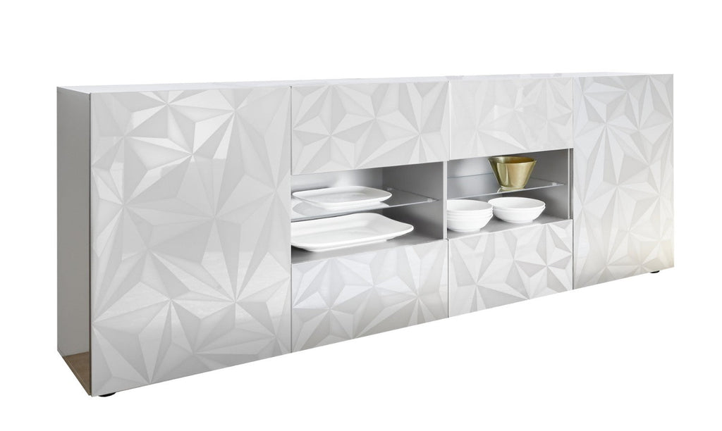 Buffet 2 portes 4 tiroirs 240x42x84 cm en bois TFT Praga blanc brillant