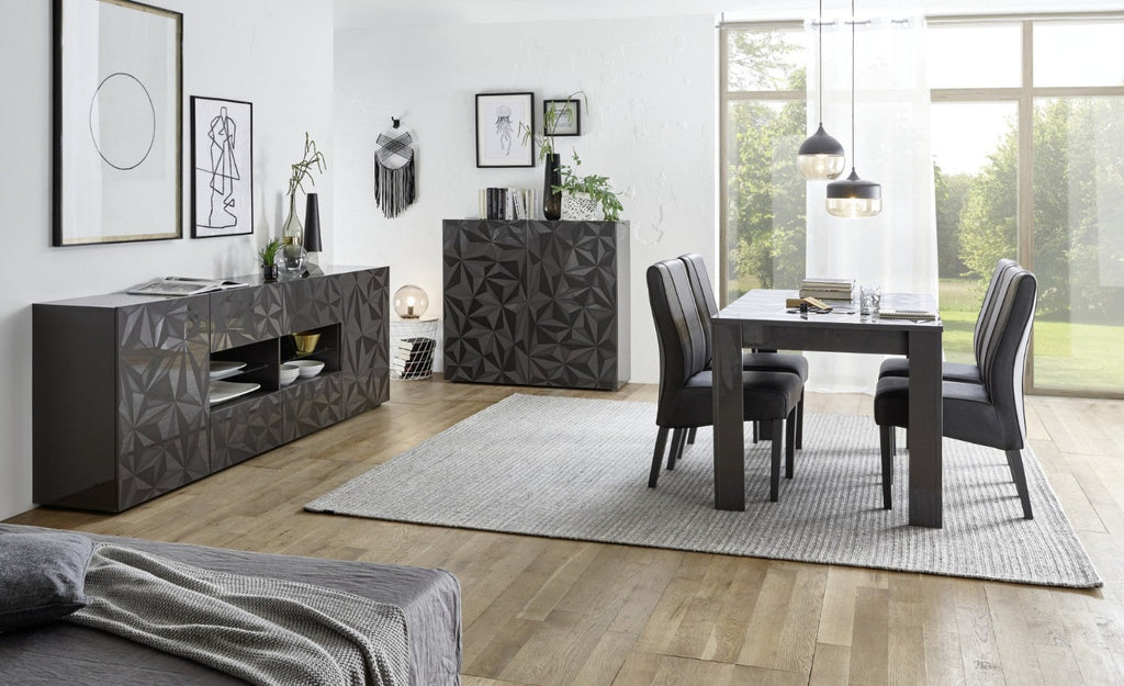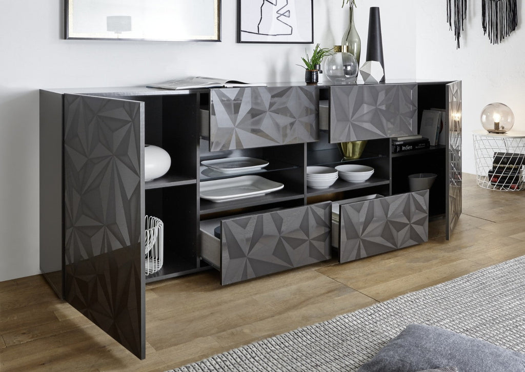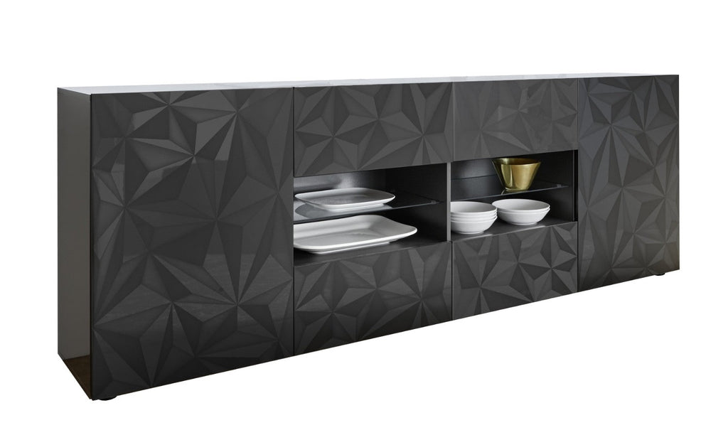 Buffet 2 portes 4 tiroirs 240x42x84 cm en bois TFT Praga noir brillant