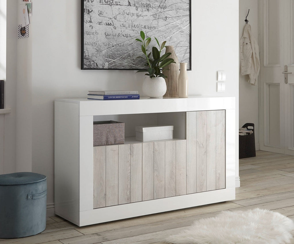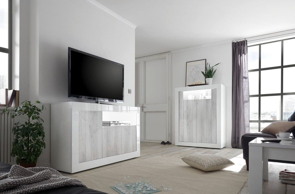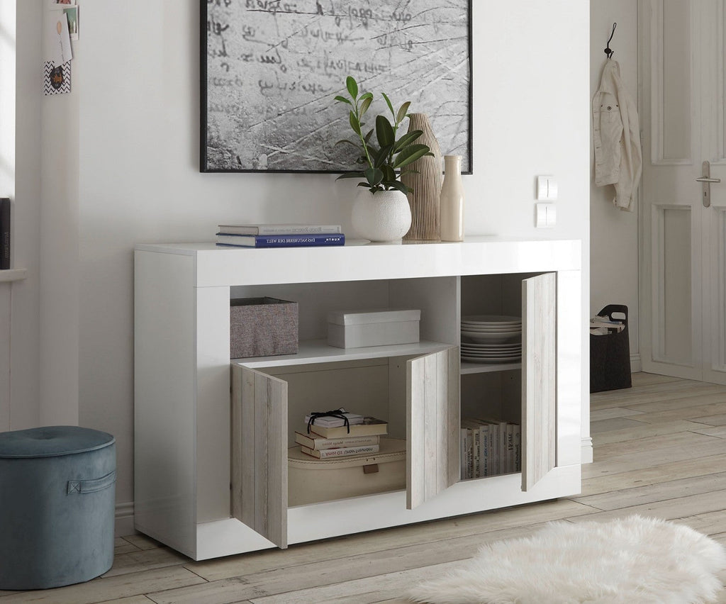 Buffet 3 portes 138x42x86 cm en TFT Lipari blanc et bois de pin
