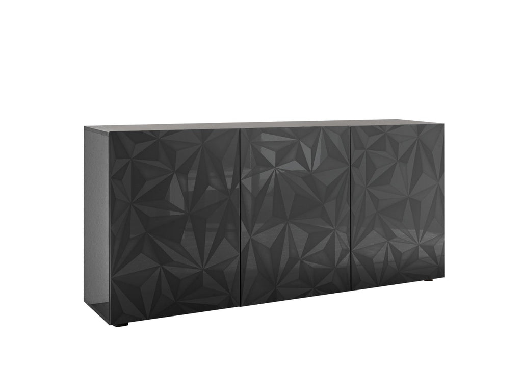 Buffet 3 portes 180x42x84 cm en bois TFT Praga noir brillant