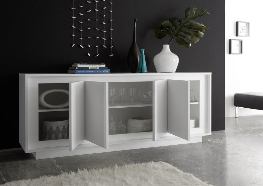 Buffet 4 Portes 207x50x80 cm en Bois TFT Blanc Mat