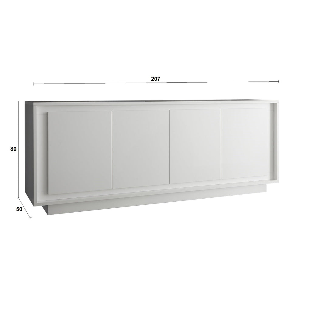 Buffet 4 portes 207x50x80 cm avec cadre en bois TFT blanc mat
