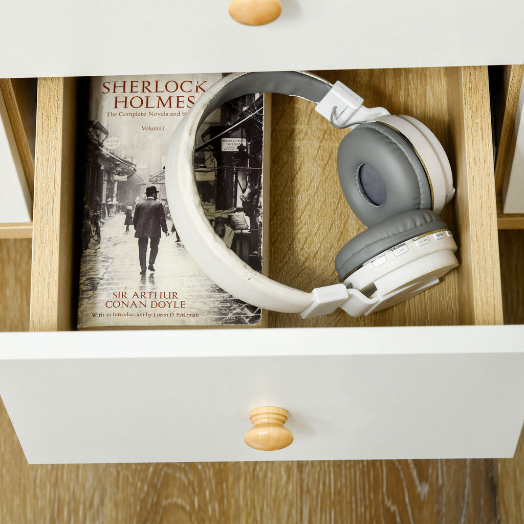 Mobile Credenza 3 Cassetti 90x32x80A cm in Truciolato e Legno di Pino Bianco