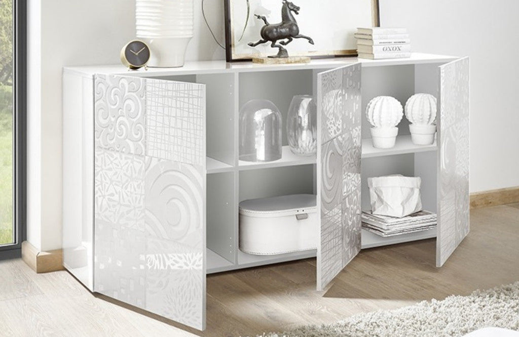 - Le buffet est sérigraphié et dans une finition blanc brillant.