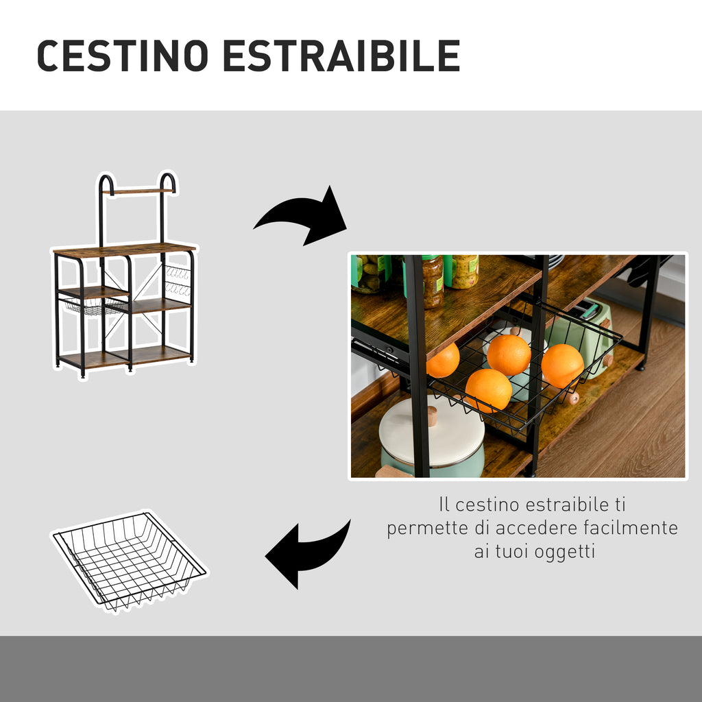Meuble de Cuisine 4 Étagères 90x40x132 cm en Métal et Bois Brun Rustique