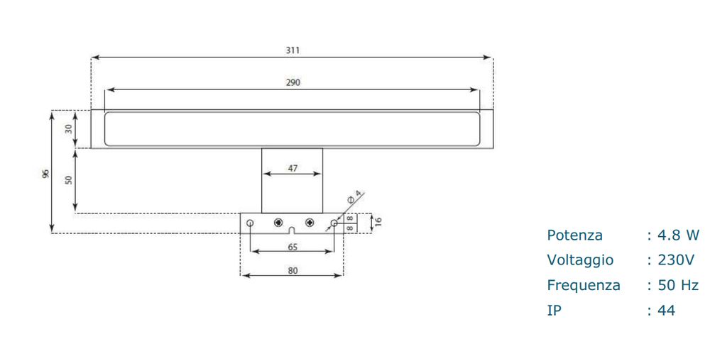Meuble de salle de bain composé de quatre pièces, portes à fermeture amortie, lavabo en céramique, miroir pivotant, lampe LED et poignées en métal