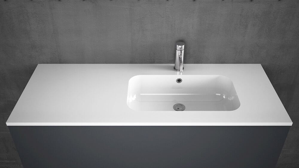 - Dessus de pierre en platine poli avec évier et trop-plein intégrés