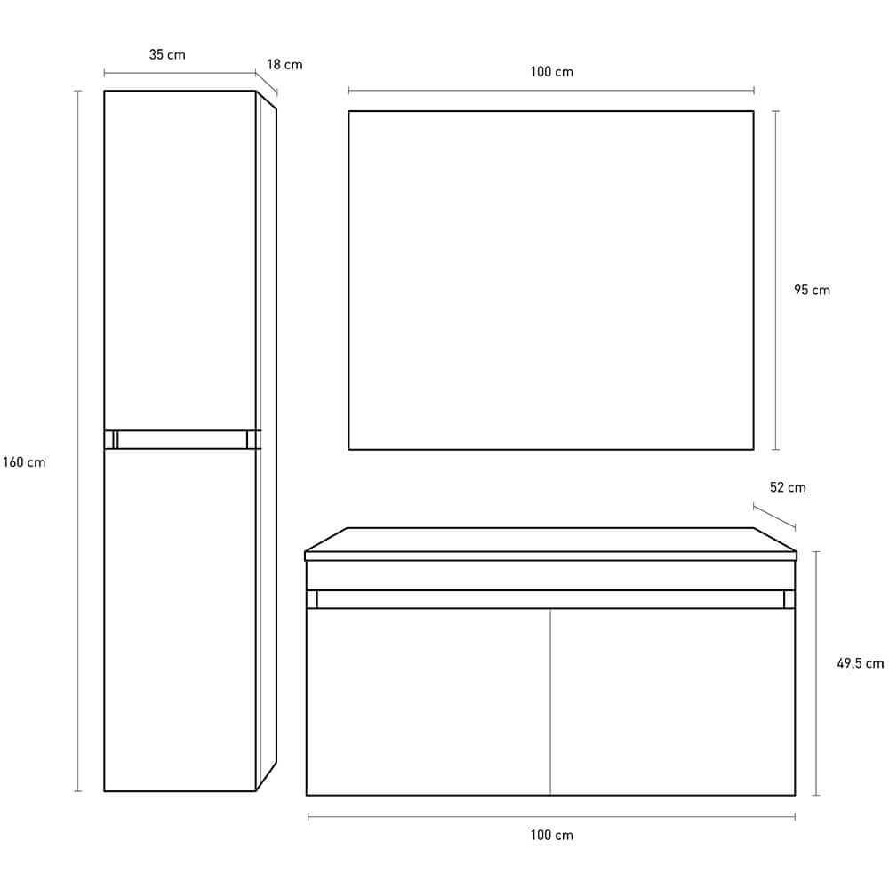 Bali 06 Maxi meuble de salle de bain moderne suspendu avec colonne suspendue, meuble suspendu avec lavabo en pierre et miroir avec lumière.
