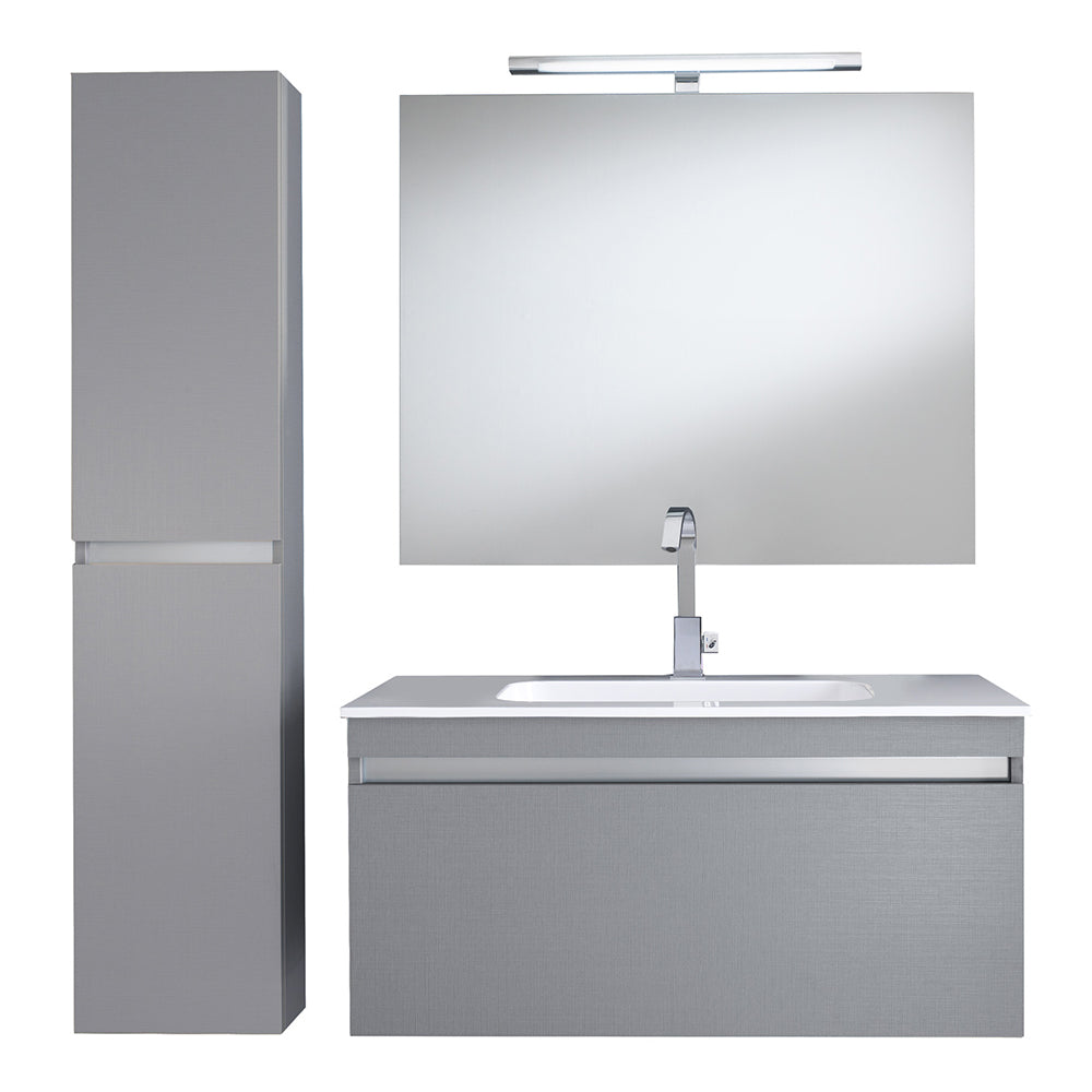 Bali 06 Maxi meuble de salle de bain moderne suspendu avec colonne suspendue, meuble suspendu avec lavabo en pierre et miroir avec lumière.