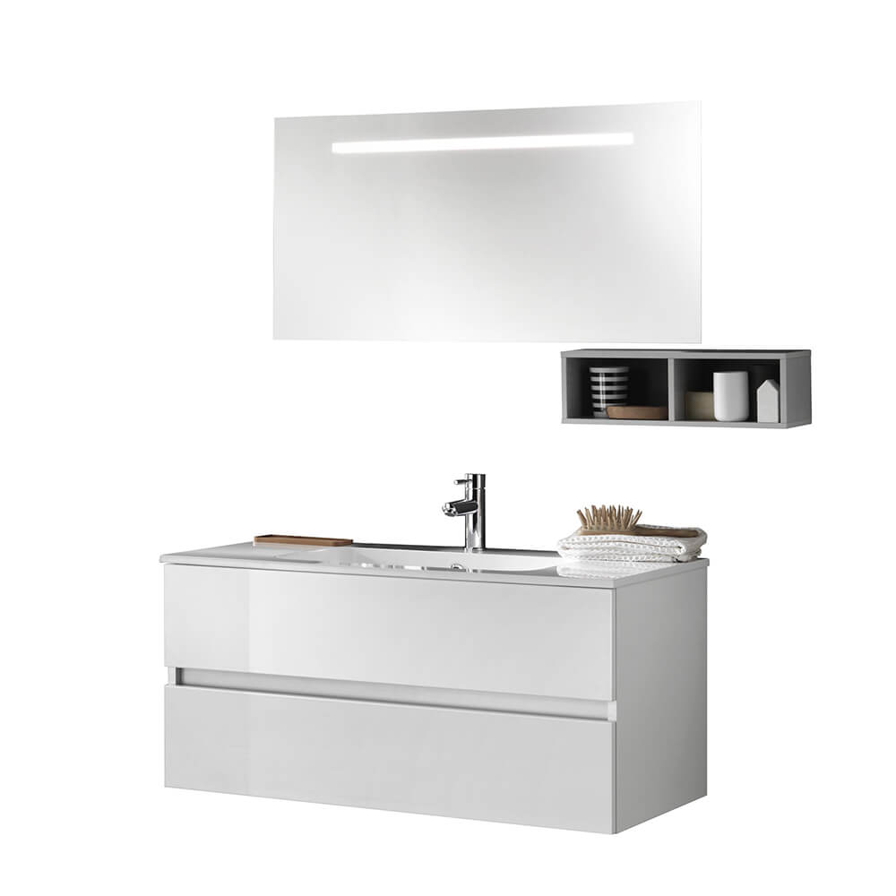 Meuble de Salle de Bain Suspendu Bali 10C Blanc Brillant TFT