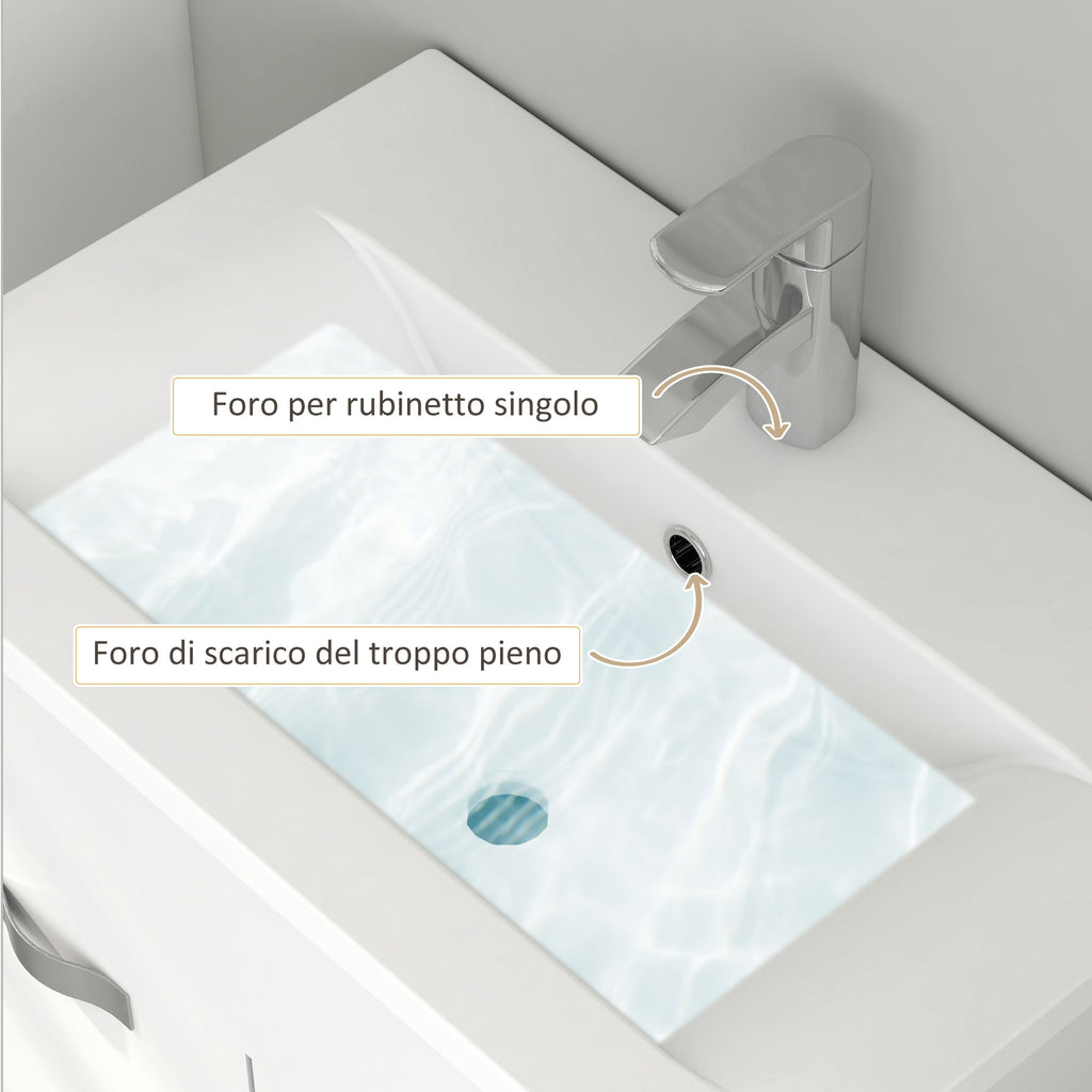 - ARMADIETTO BAGNO A MURO: Questo mobile bagno sospeso con lavandino è dotato di un foro per il rubinetto e uno per il troppo pieno, ottimizzando spazio e funzionalità
