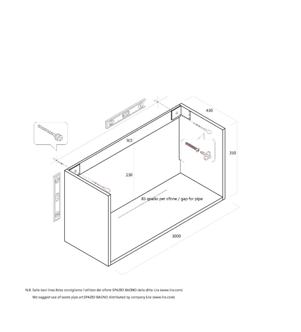 Meuble de Salle de Bain Suspendu et Tiroir à Fermeture Douce pour Vasque à Poser en Mélamine 100x45x37cm TFT Ibiza Blanc