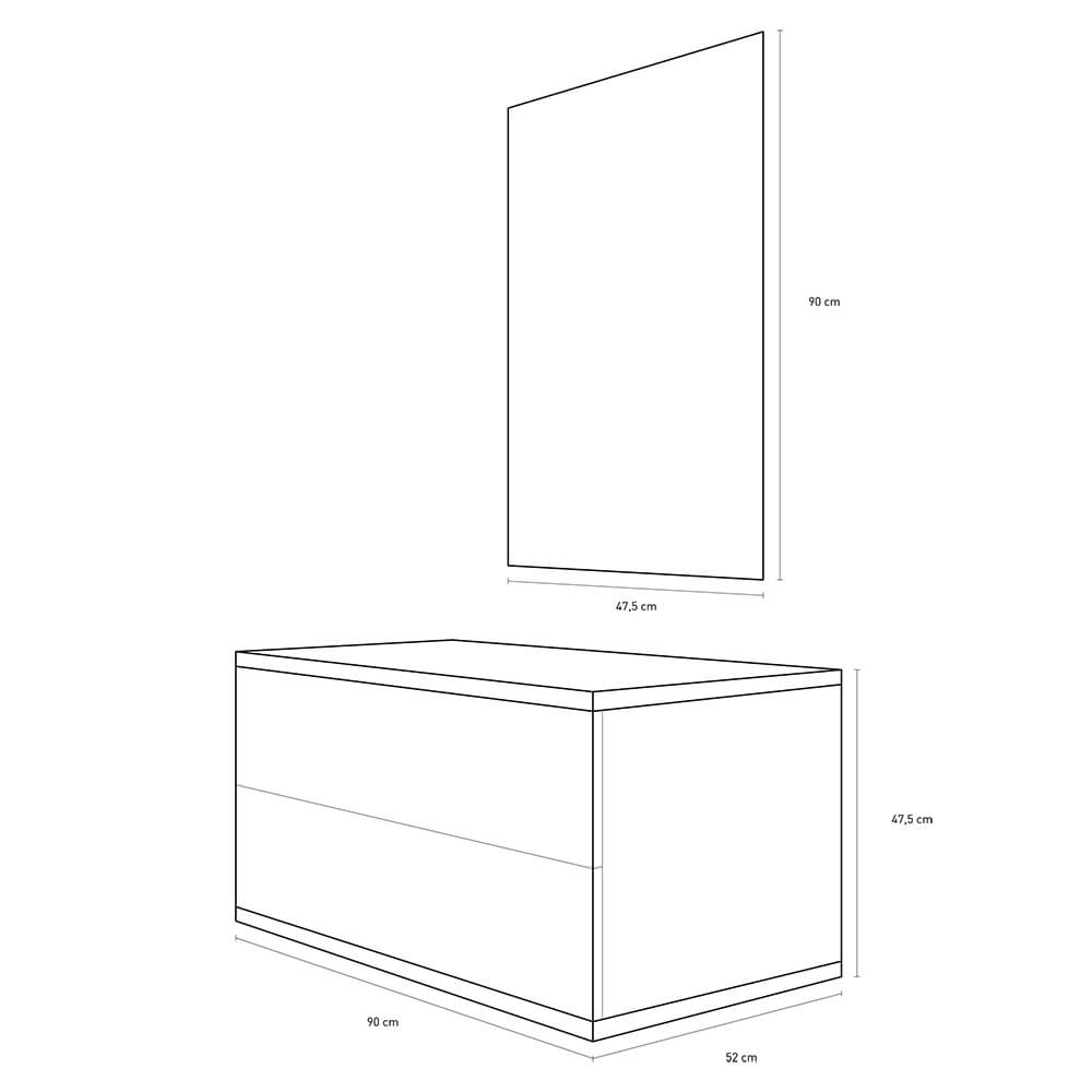 - Commode pour lavabo 90 cm avec 2 tiroirs à fermeture amortie