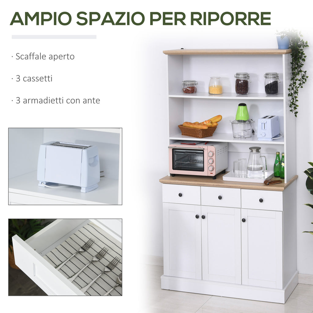 Buffet de cuisine 3 étagères 3 tiroirs 3 portes 101x39x180,5 cm blanc