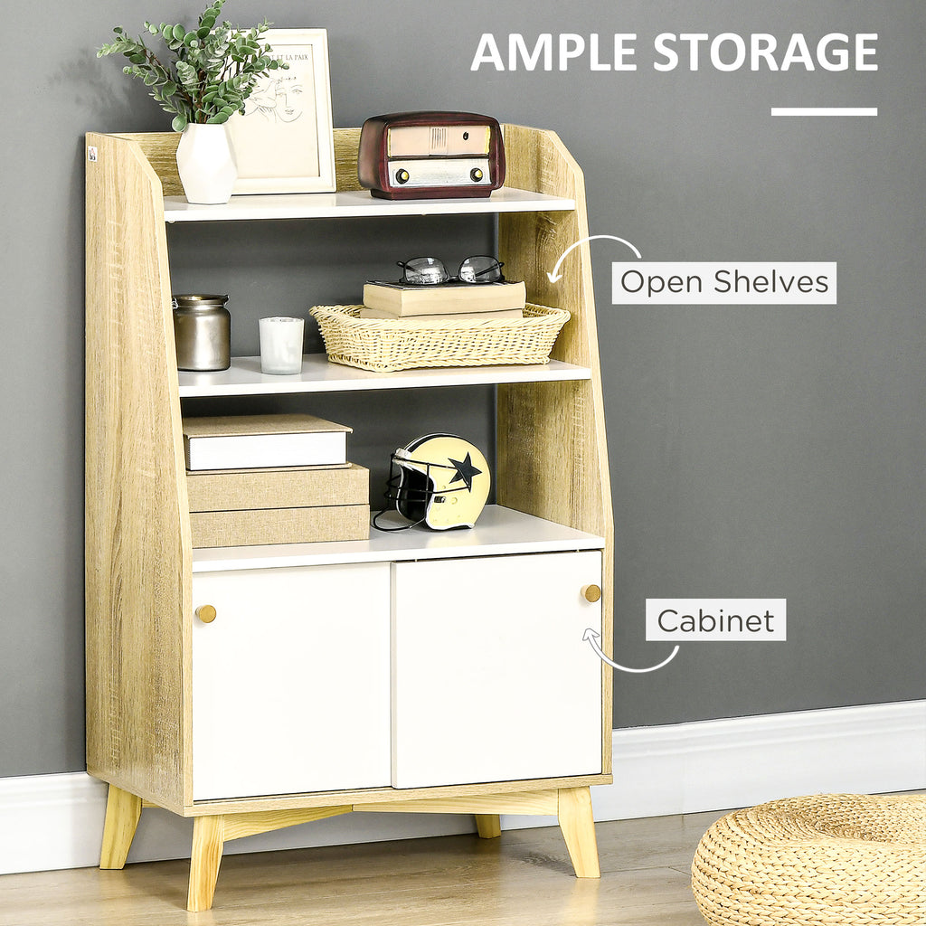 Meuble de Salon 2 Étagères et Armoire 2 Portes 58x30x93 cm en Aggloméré et Bois de Pin