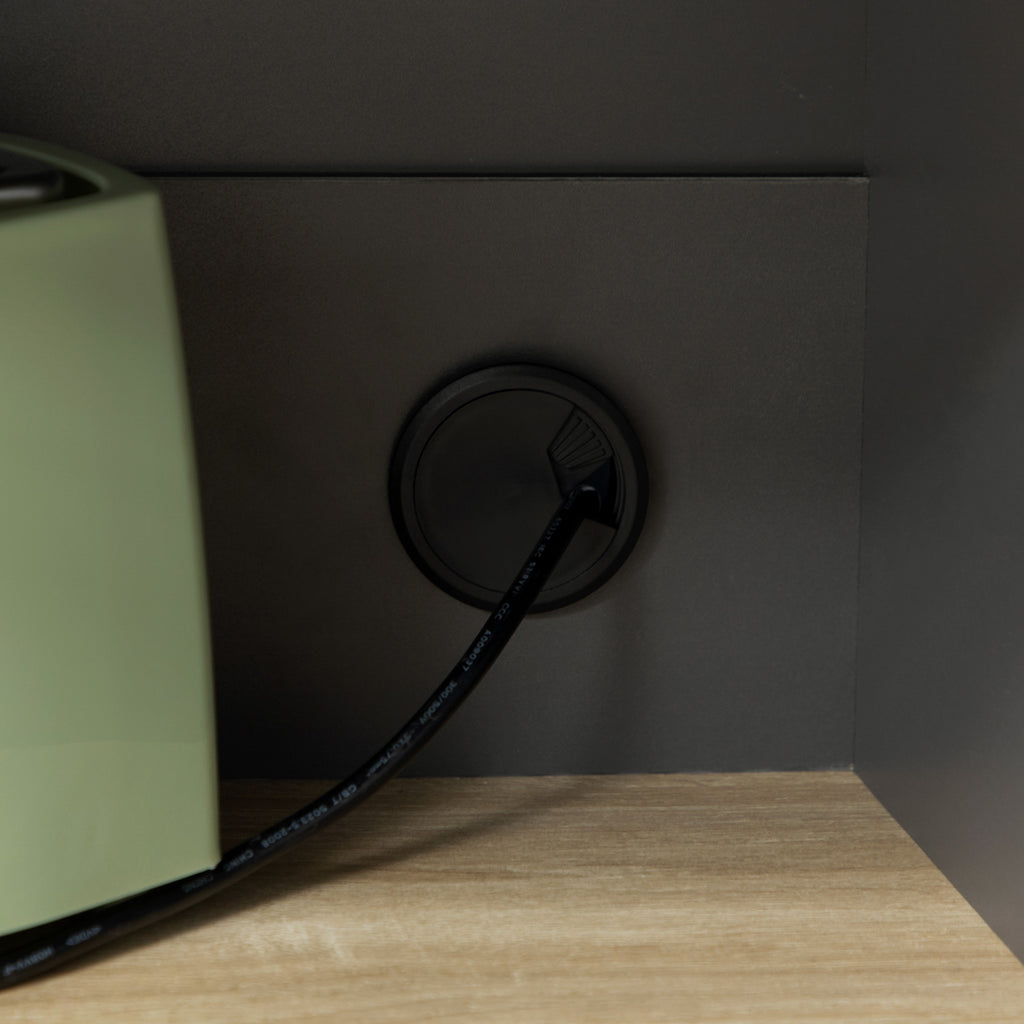 - TUTTO IN UNO: Vuoi sfruttare al meglio lo spazio a disposizione? La combinazione di ripiani aperti e armadietti rende questo mobile dispensa ideale per gli spazi più piccoli che richiedono compattezza e organizzazione. È inoltre progettato con un foro passacavi per mantenere libero il piano del tavolo