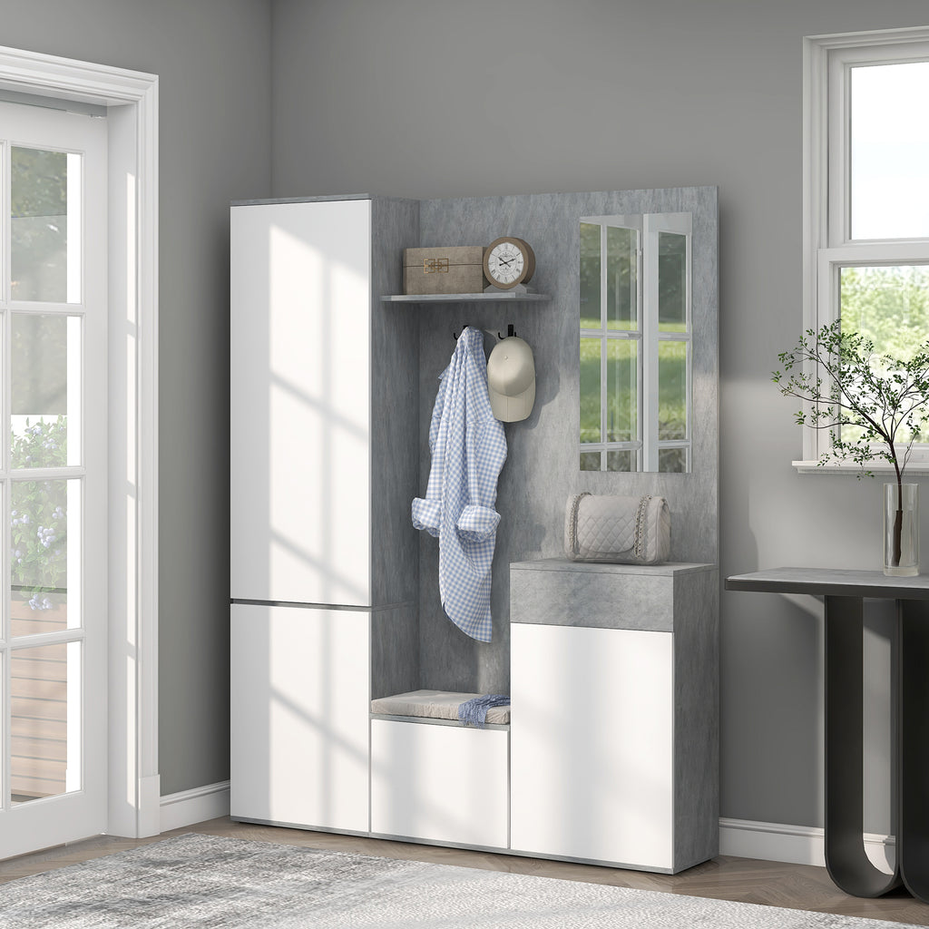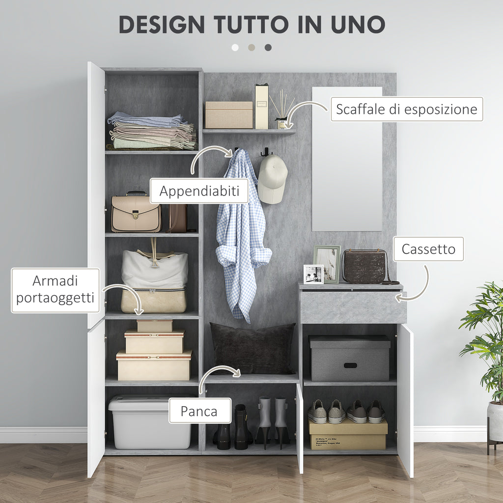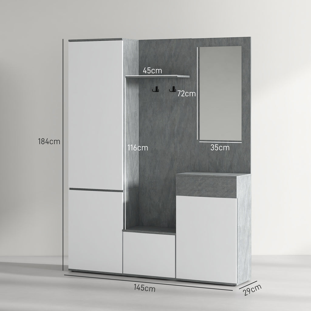 Mobile Guardaroba per Ingresso con Specchio Appendiabiti e Armadio 145x29x184 cm Grigio e Bianco