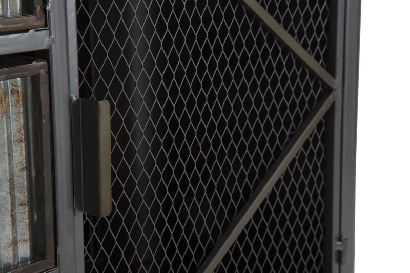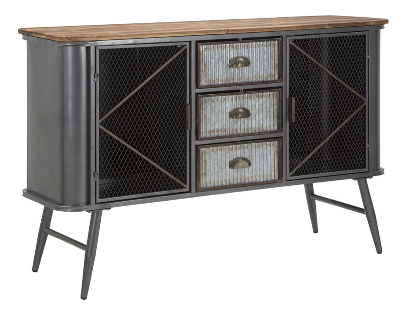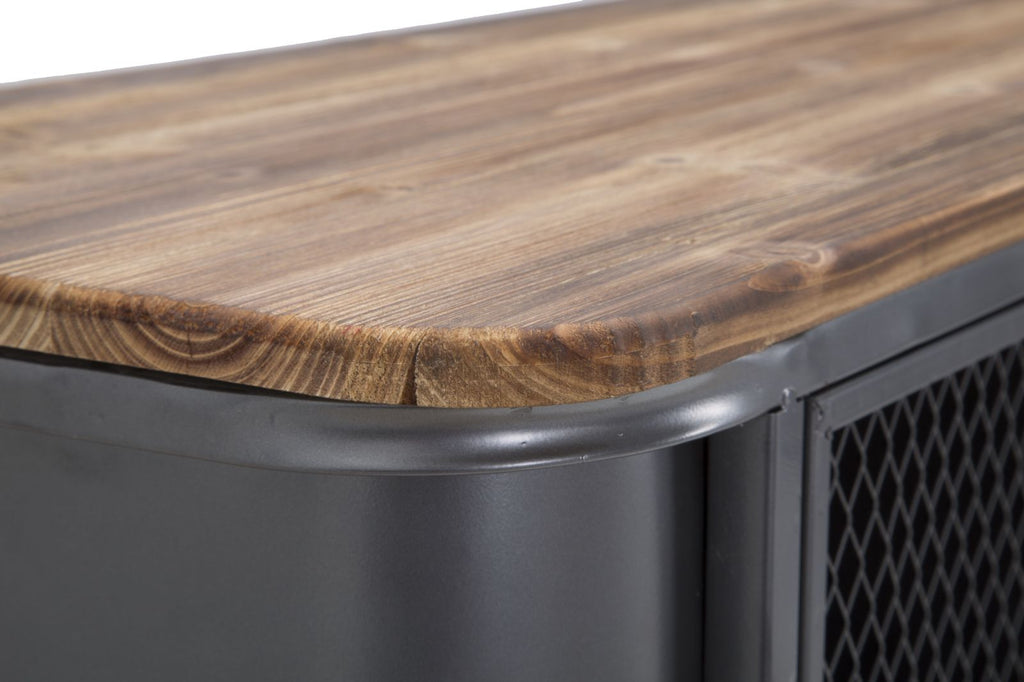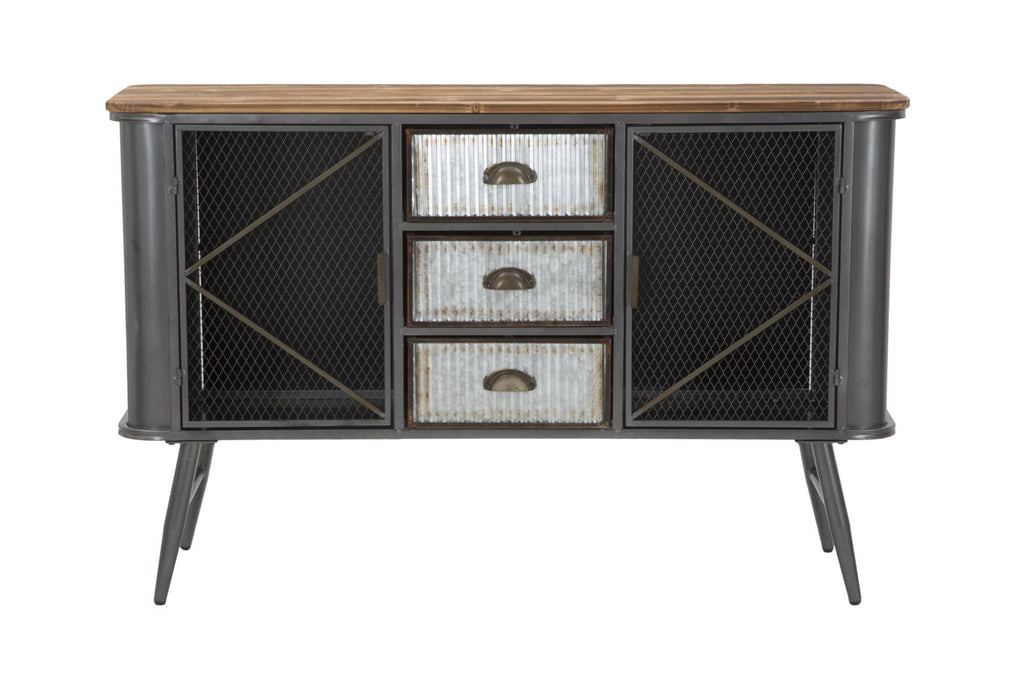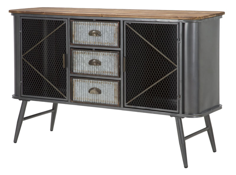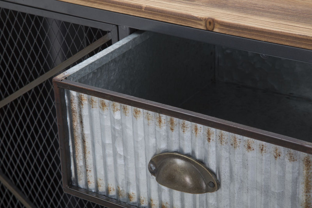Armoire en métal et bois avec 3 tiroirs et 2 portes. La ligne Illinois s'inspire du style industriel le plus cool. Le fer et le bois créent ensemble un contraste fort et percutant