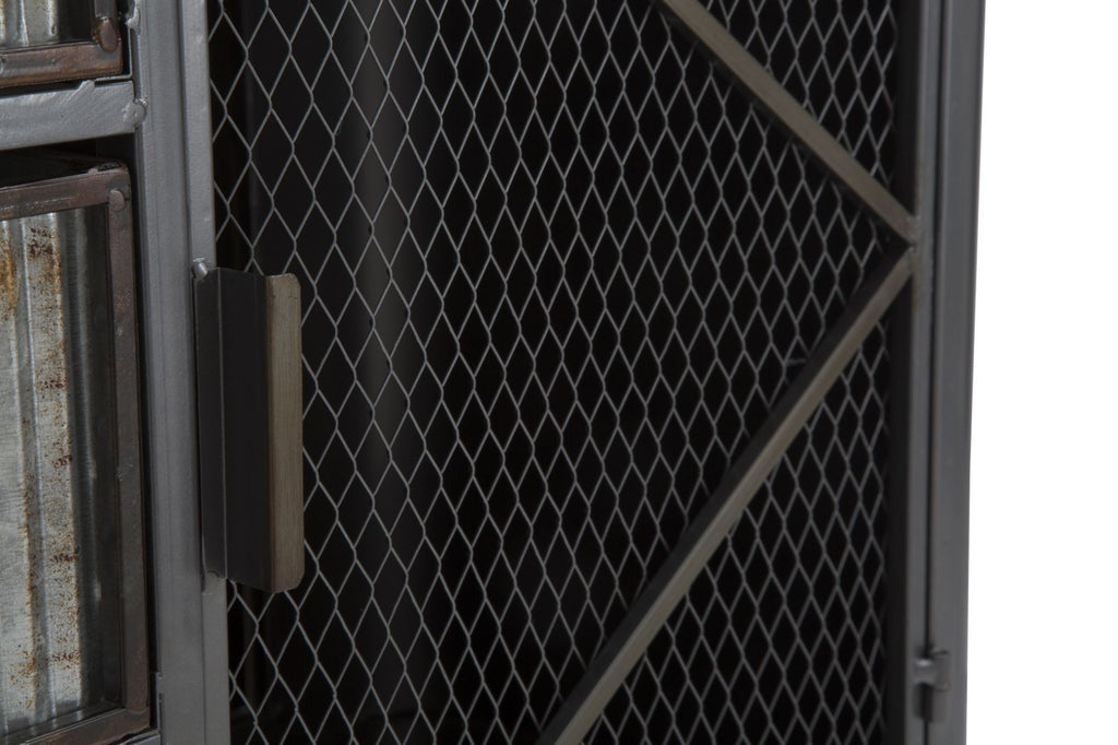 Armoire Illinois 120x35x77 cm en fer et bois de sapin gris et gris et naturel