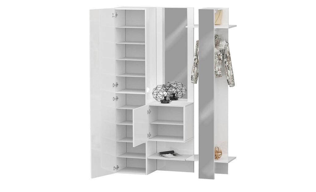 Mobile Ingresso Appendiabiti e 2 Specchi 140x35x191 cm Kompact Bianco Lucido