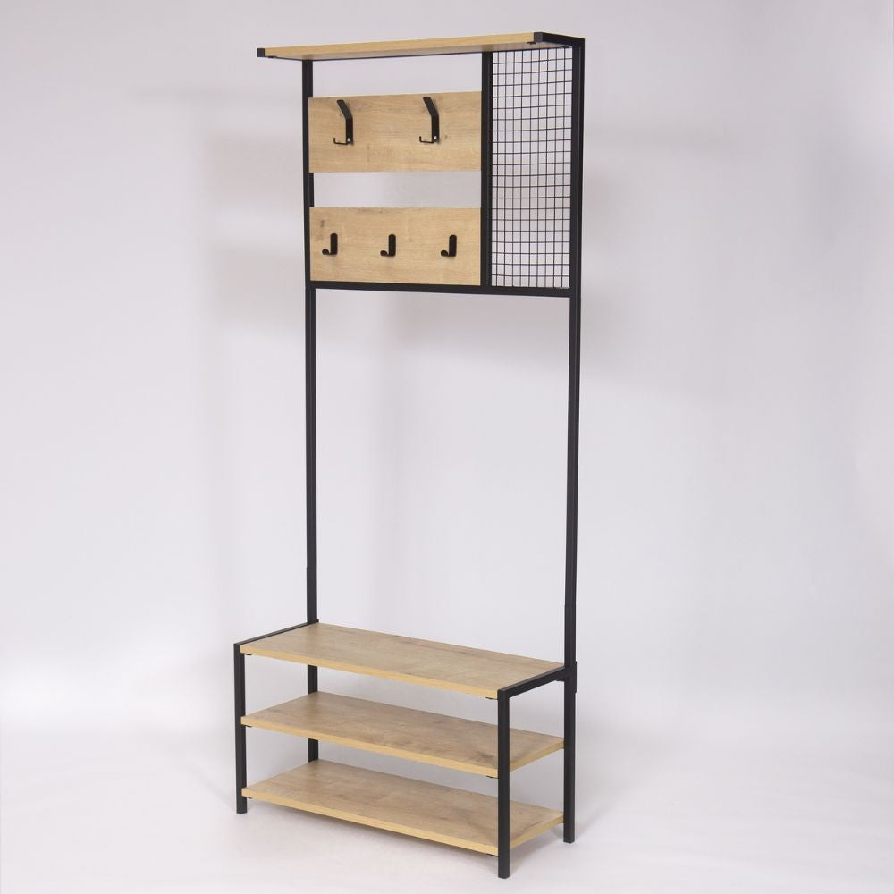 • Scaffale ingresso Nomad con 5 ganci appendiabiti multipli
