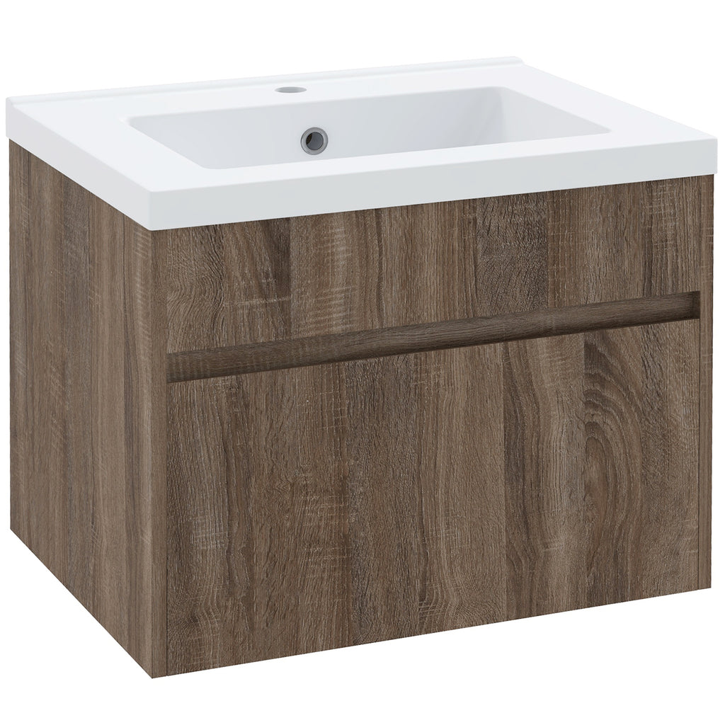 Mobile Lavabo 1 Cassetto 60x45,5x45 cm in Truciolato e Ceramica Marrone Chiaro