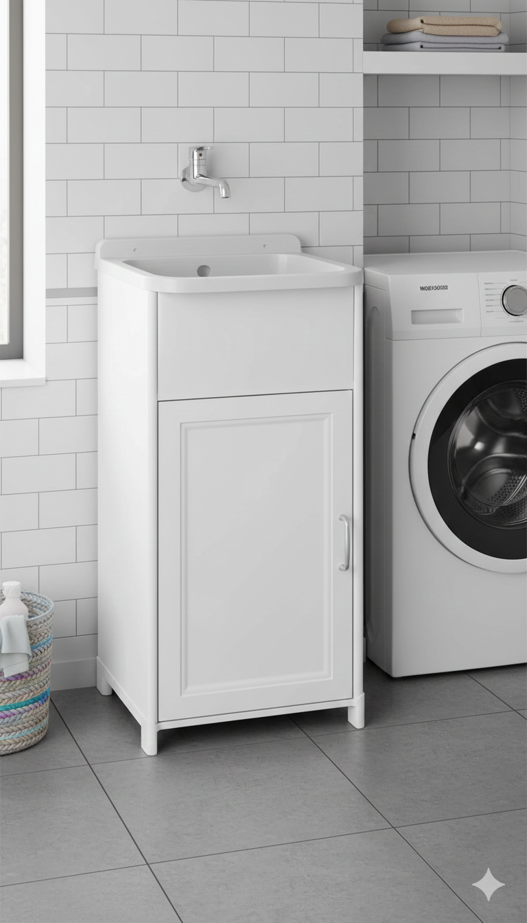 Meuble Lavabo 40x40x78 cm 1 Porte avec Pilozzo Mini en Résine Blanche