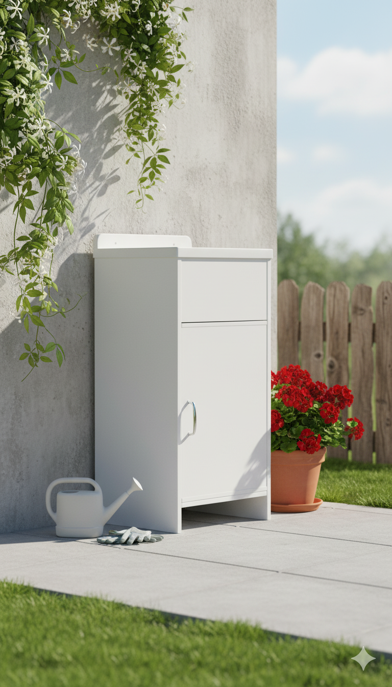 - Meuble évier peu encombrant en résine PVC renforcée (convient également pour l'extérieur)