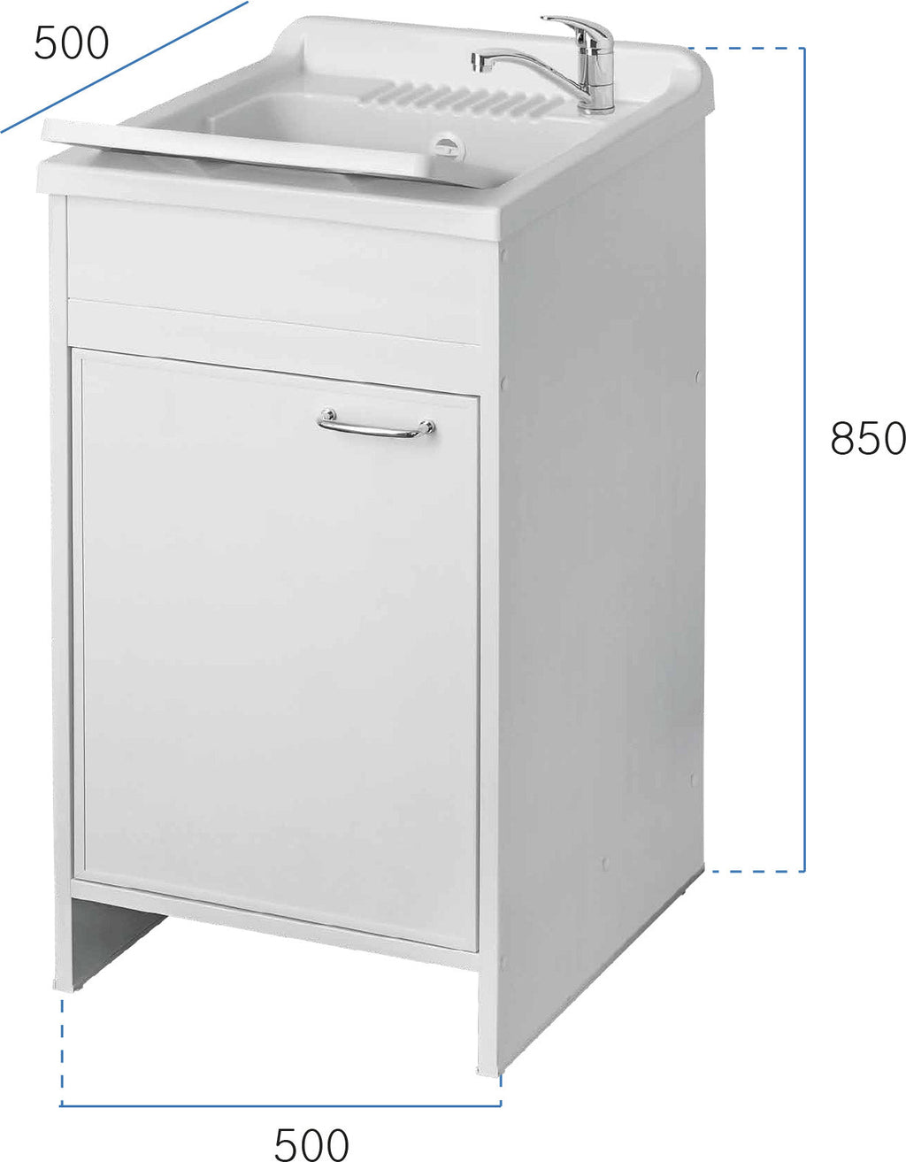 Meuble de lavage en PVC blanc avec 1 ouverture de porte, cuve en polypropylène résistant à tous les acides.